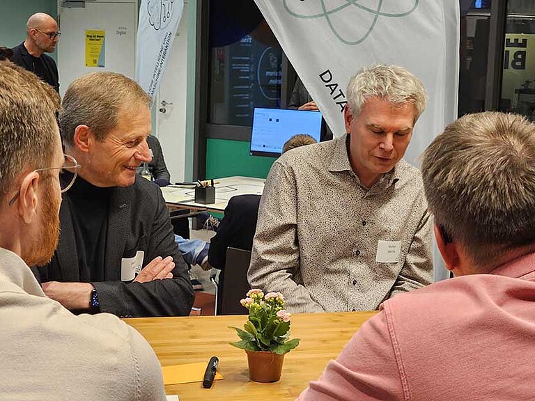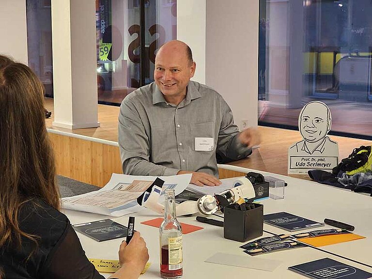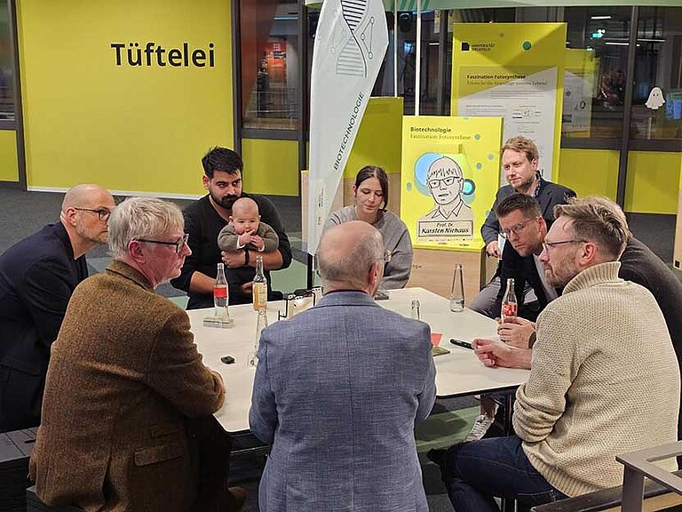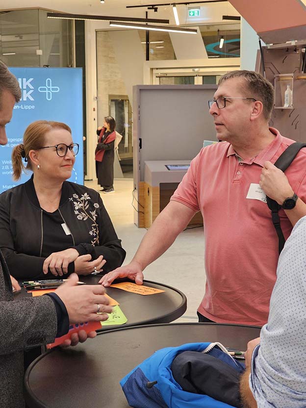 An sieben Thementischen boten renommierte Forschende von der Hochschule und Universität Bielefeld Einblicke in ihre aktuellen Projekte und diskutierten mit den Teilnehmenden über zukunftsweisende Trends. Ob Biotechnologie, Smart Products and Services, Künstliche Intelligenz oder Gesundheit und Pflege – jeder Forschungsbereich bot spannende Impulse.