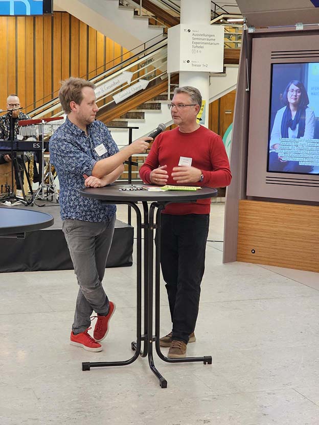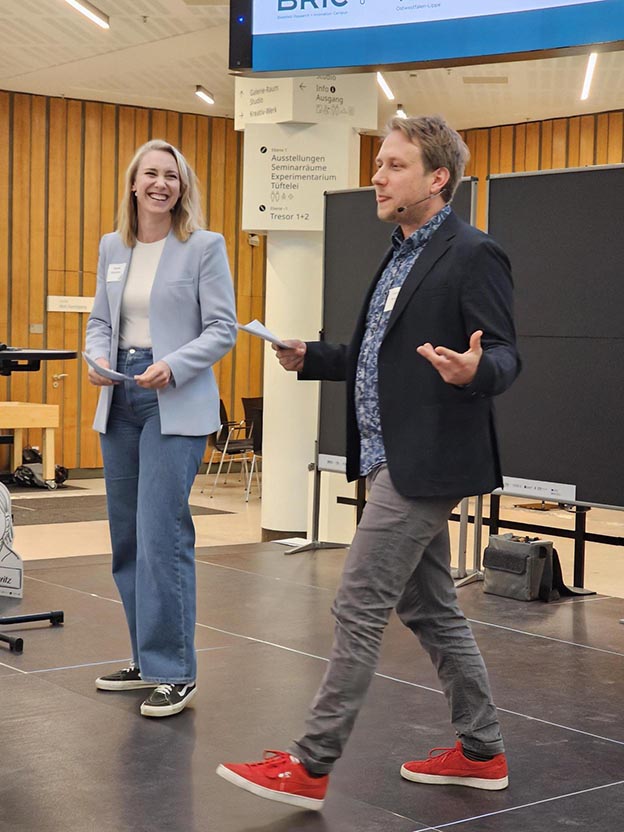 Der Abend endete mit einem Networking-Imbiss und einer unterhaltsamen Improshow von Marvin Meinold und Desirée Ackermann von „Neuroblitz“, die das Erlebte humorvoll zusammenfassten. Die Teilnehmenden nutzten die Gelegenheit, um sich in entspannter Atmosphäre weiter auszutauschen und neue Kontakte zu vertiefen. Teilnehmer Dr. rer. nat. Tobias Redecker verabschiedete sich als einer der letzten mit den Worten: