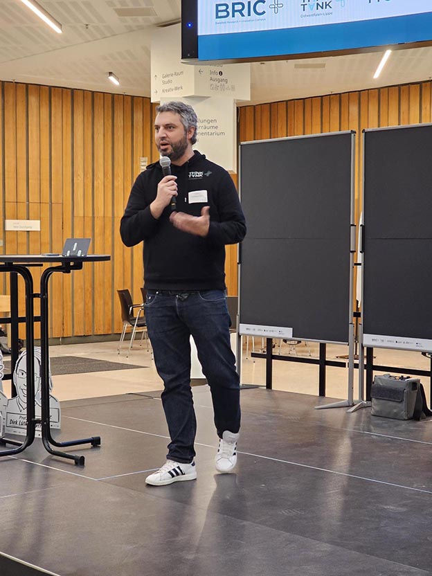 Prof. Dr. rer. Nat., Dipl.-Biol. Dirk Lütkemeyer von der Hochschule Bielefeld unterstrich, wie wichtig Formate wie die MachBar sind, um der „Third Mission“ gerecht zu werden: Wissen nicht nur innerhalb der Universität zu teilen, sondern es auch der Gesellschaft zugänglich zu machen und Impulse aus der Praxis in Forschung und Lehre aufzunehmen: